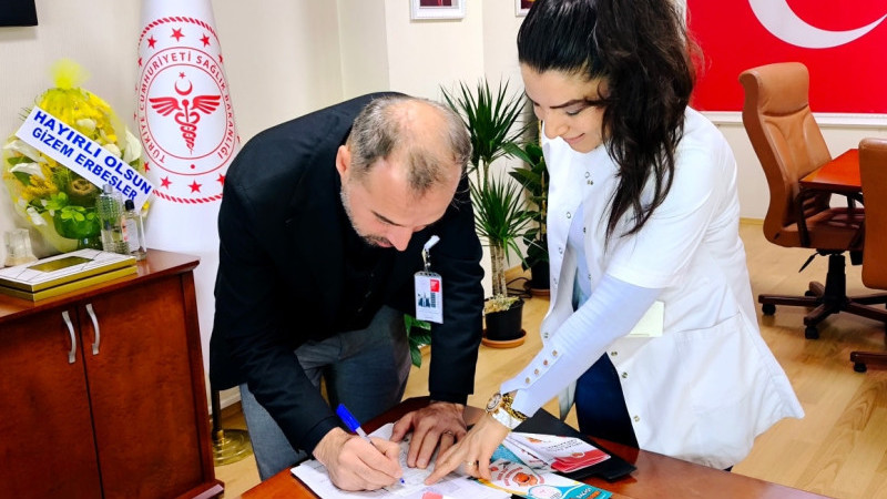 3–9 Kasım Organ ve Doku Bağışı Haftası kapsamında farkındalık oluşturmak amacıyla hastane yönetiminden anlamlı bir adım geldi. Hastane Başhekimi Doç. Dr. Zeynel Abidin Erbesler, Başhekim Yardımcıları Uzm. Dr. Kevser Güneş Yıldıran ve Dr. Öğr. Üyesi Salih Buğra Baş, organ bağışında bulunarak topluma örnek oldular.