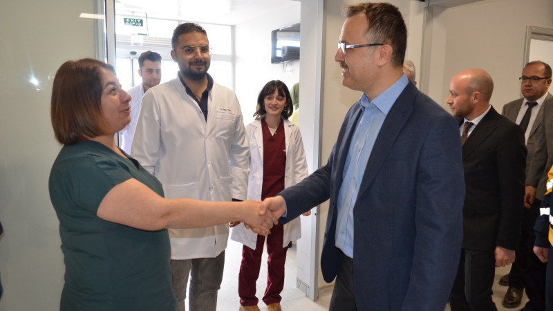 Toplantının ardından hastanede faaliyete geçen Ameliyathane ve Doğumhane ile yakın zamanda hizmete açılması planlanan 3’üncü Diş Polikliniği ve Gebe Okulu alanlarında yerinde incelemelerde bulunuldu. İl Sağlık Müdürümüz, hastanede görev yapan sağlık çalışanlarını ziyaret ederek özverili çalışmalarından dolayı teşekkür etti.