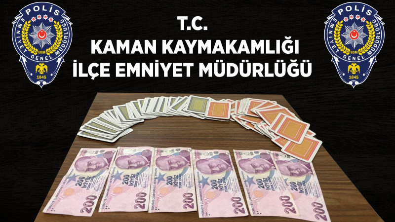 Kaman İlçe Emniyet Müdürlüğü, Asayiş Şube Müdürlüğü ve Mucur İlçe Emniyet Müdürlüğü ekiplerinin ortak yürüttüğü çalışmalar neticesinde yapılan kontrollerde, kumar oynadığı belirlenen toplam 8 kişiye Kabahatler Kanunu kapsamında 92 bin 832 TL idari para cezası uygulandı. Ayrıca, kumarda kullanıldığı değerlendirilen 6 bin 900 TL nakit paraya el konuldu.